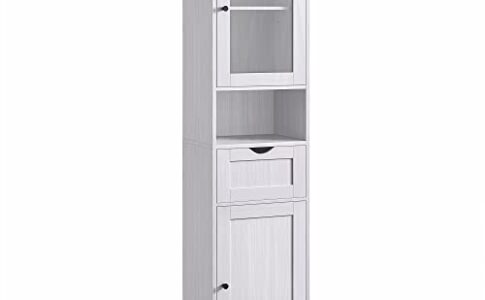 Armadio di design elegante per sistemare carta igienica, detersivi e altri accessori da bagno nel suo interno.