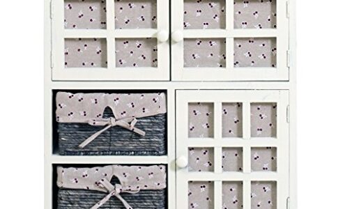 Rebecca Mobili Mobile Multiuso Shabby, credenza 3 Ante 2 cassetti, Paulownia e Vimini, per Cucina, Bagno – Misure 65 x 60 x 35 cm (HxLxP) – Art. RE4097
