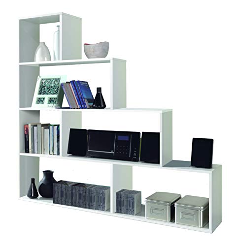 Libreria in stile moderno, perfetta per impreziosire l’arredo del soggiorno e del living, ma funzionale in ogni spazio (corridoio, camera da letto, ingresso); ideale come elemento divisorio per open space, uffici o camera doppia ragazzi