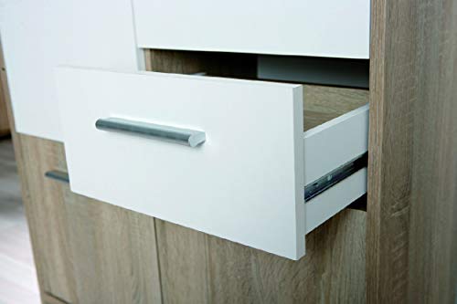 Realizzato in laminato con finitura mista rovere e bianco laccato