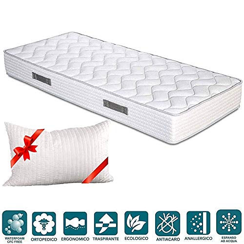 ✅ Materasso una Piazza e Mezzo 120×190 in Waterfoam alto 20 cm, Water Foam ad alta resilienza, poliuretano in schiuma espansa ad acqua, Ecologico. Ideale per ogni Rete o Letto una Piazza e Mezza, Fodera colore Bianco in Offerta con Cuscino Letto GRATIS ? in Fiocco Memory Cervicale del valore di 30 € !