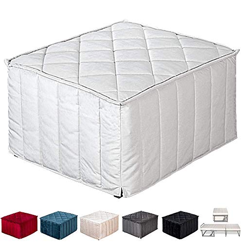 ✅ Pouf Letto con Materasso Singolo in Water Foam, Elegante Soluzione Salva Spazio, pratico – bello e comodo, adatto per tutti gli ambienti e per tutti gli usi. Fodera del rivestimento in VELLUTO completamente sfoderabile e lavabile a 30 gradi, colore Bianco.