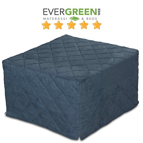 ✅ Pouf Letto con Materasso Singolo in Water Foam, Elegante Soluzione Salva Spazio, pratico – bello e comodo, adatto per tutti gli ambienti e per tutti gli usi. Fodera del rivestimento in CAMOSCIO completamente sfoderabile e lavabile a 30 °C, color Blu Notte.