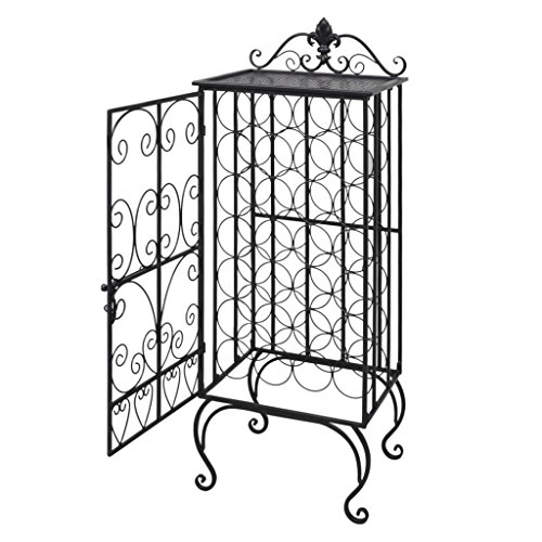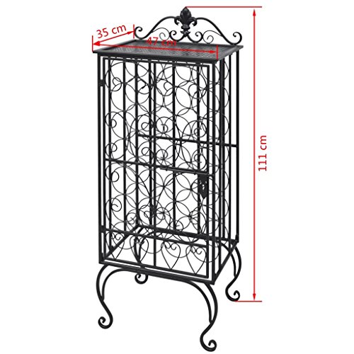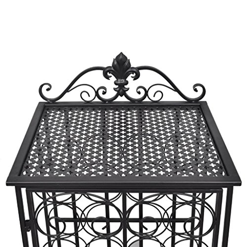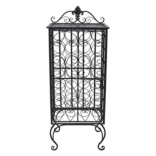 Realizzato in ferro battuto, è completamente verniciato a polvere contro la ruggine e durerà per generazioni! Questo armadietto del vino è ideale per contenere fino a 28 bottiglie di vino dietro la porta a serratura laterale.