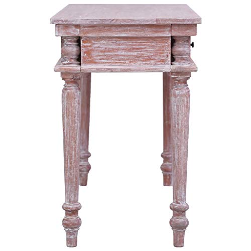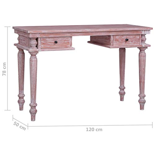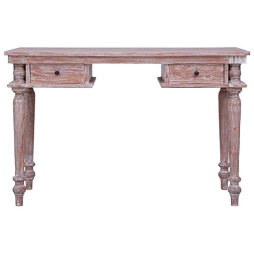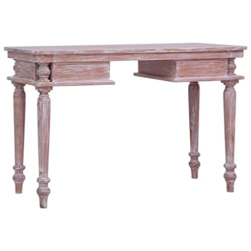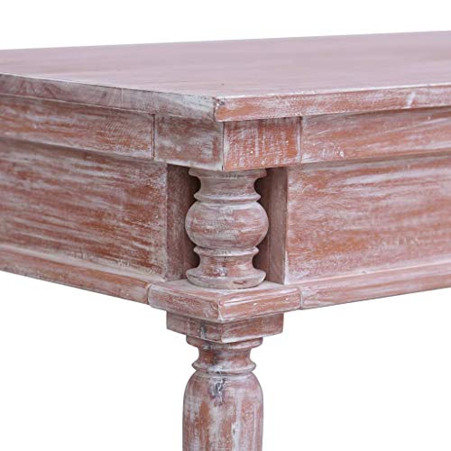 Realizzata in legno massello di mogano con finitura color bianco lavato, questa solida scrivania in legno è estremamente robusta e resistente. Il mogano è un legno tropicale che si distingue per bellezza, resistenza e colore unico.