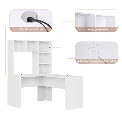 【Aspetto moderno】: la scrivania del computer con ripiano è potente, bianca elegante, semplice e alla moda, non solo adatta a luoghi diversi, ma può anche essere abbinata a diversi stili di decorazione. Non solo è una tavolo PC computer,scrivania da studio e ufficio, ma può anche essere utilizzato come scrivania per PC,scrivania con libreria ad angolo, scrivania da gioco, scrivania con mensola da ufficio, ecc.