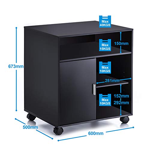 【Funzionale】- Dimensione 60x50x66,4cm con 3 contenitori aperti 2 chiusi che possono offrire spazio sufficiente; il carico della parte superiore è di 40kg dove può contenere una piccola stampante domestica