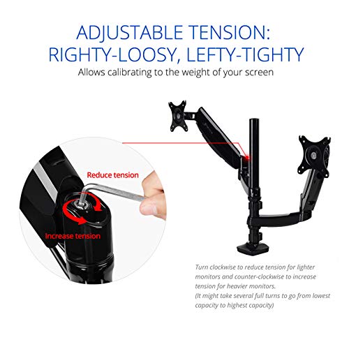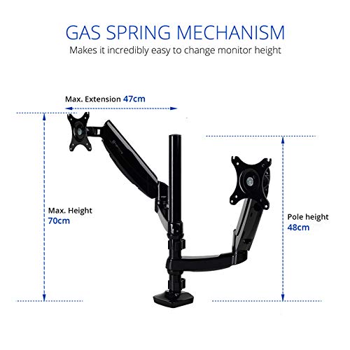 REGOLAZIONE COMPLETA – Regolazione dell’altezza attraverso i bracci a molla, ruotare / articolare ciascun braccio di collegamento, inclinare e ruotare la staffa del monitor. Il sistema di sospensione a gas consente di modificare l’altezza del monitor con un semplice tocco del dito.
