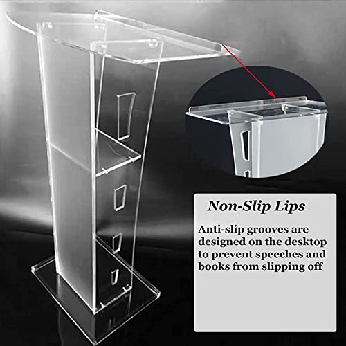 SPAZIO DI ARCHIVIAZIONE AGGIUNTIVO:il podio in acrilico considera pienamente la situazione che l’utente dovrà affrontare, la parte centrale del podio è progettata con uno strato di scheda di archiviazione, puoi mettere oggetti sparsi su di esso per rendere più comodo il tuo discorso.