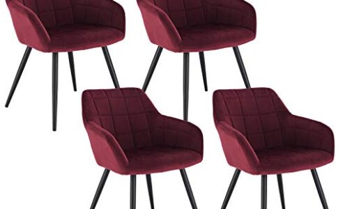 WOLTU 4X Sedie da Pranzo Poltroncina per Camera da Letto Moderna in Tessuto di Velluto Bordeaux BH93bd-4