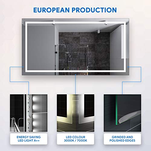 ⭐FABBRICAZIONE EUROPEA – lo specchio di suprema qualità eseguito con migliori materie prime accessibili sul mercato I nostri specchi adottano i diodi LED moderni che contribuiscono alla riduzione del consumo di energia mantenendo nello stesso tempo intensità di illuminazione