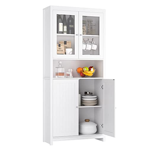 【Materiale】: l’mobile cucina dispensa è realizzata in legno e vetro di alta qualità, tutte queste proprietà rendono la libreria più durevole, stabile e facile da pulire.