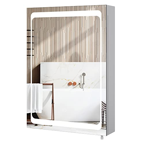 【Mobile bagno con specchio di alta qualità】: l’armadietto a specchio è realizzato in acciaio inossidabile e vetro, che ha una lunga durata e il materiale in acciaio inossidabile è resistente alla ruggine e alla corrosione. Il pensile del bagno è certificato CE e certificato ROHS, IP44 antipolvere e impermeabile, fornendo la massima protezione per la sicurezza tua e della tua famiglia.