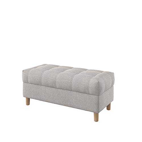 Progettato come comodo sedile o poggiapiedi. Questa panca ha una parte superiore senza bottoni e spazio di archiviazione.