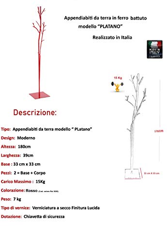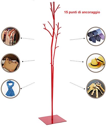 Generico Appendiabiti da Terra in Ferro BATTUTO ATTACCAPANNI Albero PLATANO Rosso