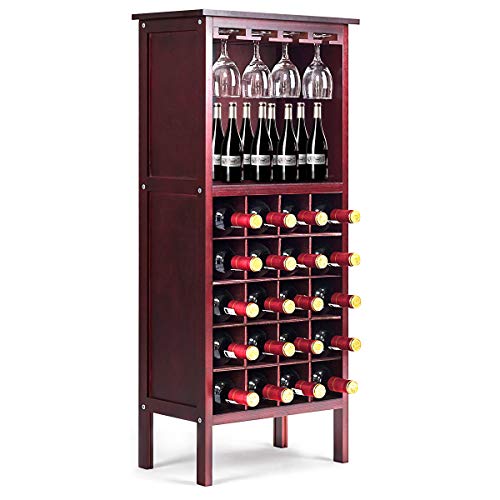 Ampio e capiente: la cantinetta vino è divisa in parti superiori e inferiori. Ci sono 5 ripiani sotto che possono contenere 20 bottiglie di vino. Nella parte superiore si trova un ampio vano portaoggetti dove si possono posizionare bottiglie di vino o altri contenitori verticali. Inoltre ci sono 4 ganci per bicchieri da vino per posizionare i calici.