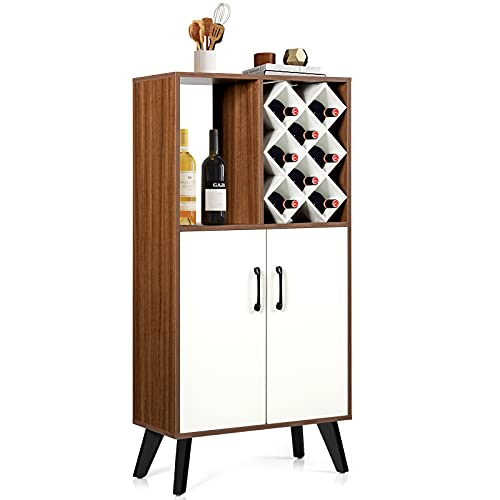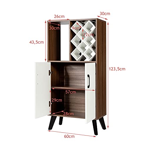 Ampio spazio: Un contenitore grande e i ripiani offrono spazio sufficiente in grado di soddisfare le vostre esigenze di spazio e facilitare la classificazione degli oggetti. Dotato di un piano di portabottiglie e due armadietti con ante, vi permette di tenere in ordine le vostre bottiglie di vino e altri oggetti occupando poco spazio.