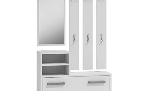 Selsey Set appendiabiti, materiale a base di legno, Bianco, 62.99 x 33.46 x 9.45 cm