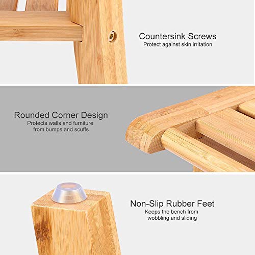 【Facile da usare】: la sedia da doccia in legno ha angoli arrotondati per proteggere l’uomo e i mobili da urti; Panca per doccia portatile di dimensioni perfette per box doccia di piccole dimensioni.