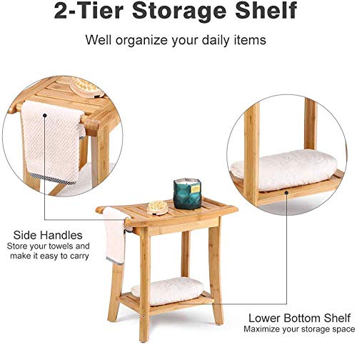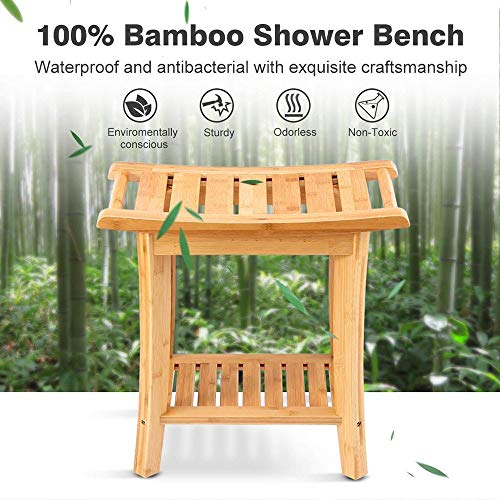【Sedia da Doccia in bambù】: elegante banco doccia in legno di bambù ben rifinito, impermeabile, rinnovabile e sostenibile; caricare fino a 200 kg.