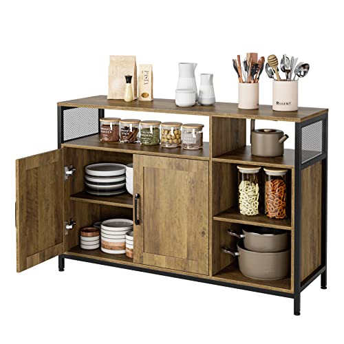 Una scelta elegante per la vostra casa: La combinazione di pannelli in legno marrone e cornice nera conferisce a questa credenza uno stile industriale che si abbinerà facilmente all’arredamento della vostra casa e agli altri mobili, aggiungendo fascino alla vostra sala da pranzo, alla cucina o a qualsiasi altra stanza