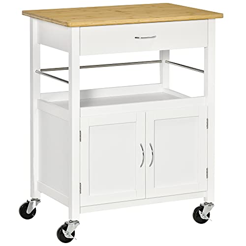VERSATILE: Grazie al cassetto, all’armadietto e ai ripiani, questo carrello da cucina offre un comodo spazio in cui riporre utensili e provviste. Il suo design compatto ti permette di posizionarlo facilmente anche in piccoli spazi.