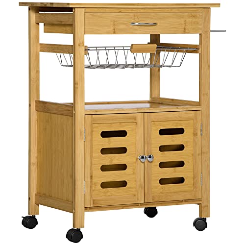 STILE NATURALE: Semplice ed elegante, il nostro carrello da cucina è perfetto per ogni spazio. La struttura compatta è ideale per aggiungere spazio in cui riporre i tuoi oggetti in ambienti di piccole dimensioni. Il piano in bambù è resistente e pratico per i tuoi lavori in cucina.