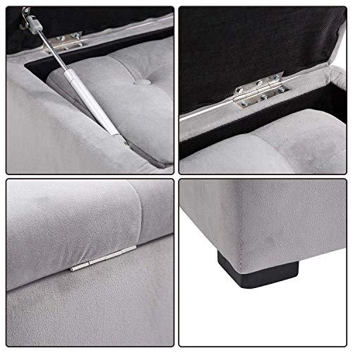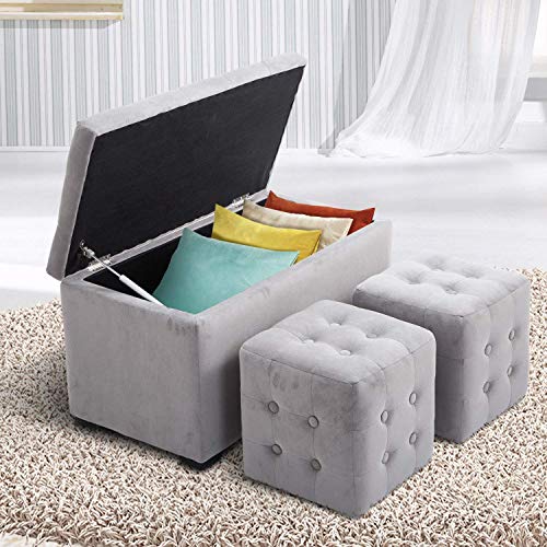 ✅Colore: Grigio perla- Materiale: Tessuto di velluto, spugna, legno MDF – Dimensione della panca: 75 x 40 x 42cm