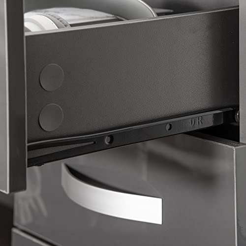 DESIGN SOLIDO E PRATICO: Il comodino è realizzato con pannelli di truciolato per garantirne la stabilità. Inoltre è dotato di maniglie in metallo per facilitare l’apertura del cassetto.