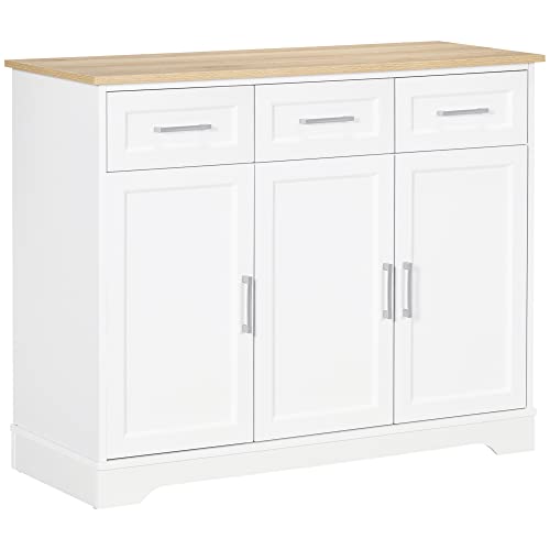 AMPIO SPAZIO: Questa credenza da cucina dispone di tre cassetti e due armadietti a 2 livelli con tre ante per tenere gli oggetti nascosti dalla vista e al riparo dalla polvere, oltre che un piano d’appoggio per appoggiare piatti e utensili.
