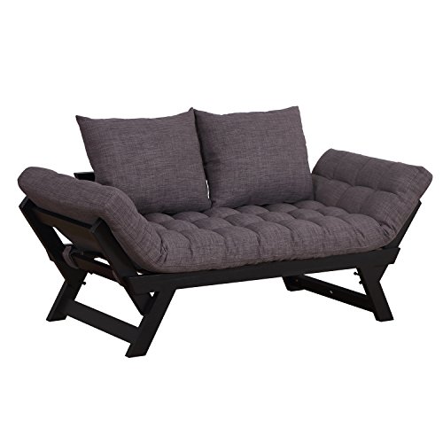 DESIGN MODERNO ED ELEGANTE: Il design moderno e minimal di questo divano letto ti farà innamorare. Con cuscini imbottiti, rifiniture in legno di rovere nero, e due larghi guanciali comodissimi, porterà un tocco di stile all’arredamento di casa tua.