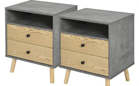 WOLTU Set di 2 Comodini da Notte Comodino Camera da Letto in Legno con 2 Cassetti e Scomparto Mobiletto Salvaspazio per Salotto, Gambe in Pino, 45x40x56cm, Grigio+Rovere Chiaro, TS141gr-2