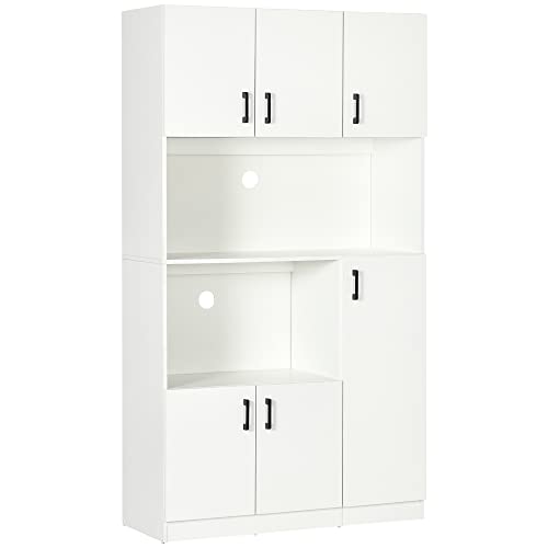 AMPIO SPAZIO: I molteplici ripiani di questo mobile dispensa offrono spazio a sufficienza per tutti i piatti, libri di cucina, pentole o contenitori di plastica. Lo spazio centrale aperto e il vano possono contenere elettrodomestici come il microonde o la macchina da caffè. Le 6 ante consentono di sistemare gli oggetti in modo da tenerli al sicuro e al riparo dalla polvere. Se hai oggetti più alti, puoi regolare il ripiano interno per adattarlo a brocche, contenitori per la pasta e frullatori.