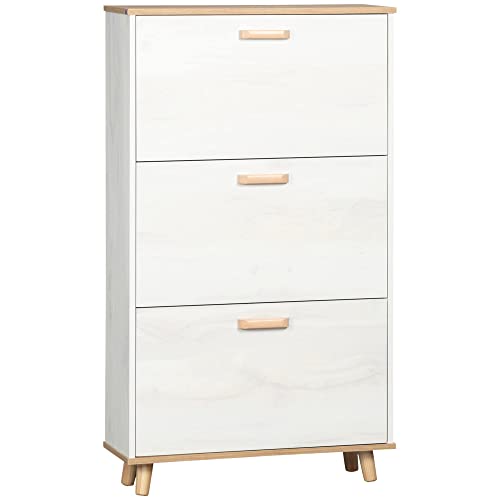 STRUTTURA ROBUSTA: Realizzato con struttura in truciolato e piedi in legno di pino, questa scarpiera da ingresso è stabile e di facile manutenzione. Inoltre, il design antiribaltamento sul retro aggiunge ulteriore sicurezza per te e i tuoi ospiti.
