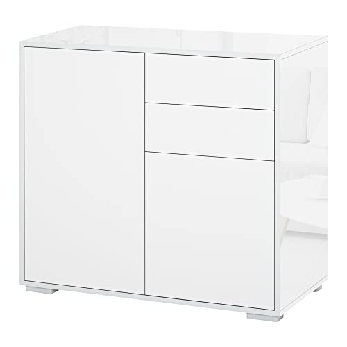 AMPIO SPAZIO E APERTURA A PRESSIONE: Dotato di 2 cassetti, 2 armadietti e un ampio ripiano superiore. Gli armadietti hanno mensole regolabili ed è facile aprire gli scomparti grazie al design a pressione.