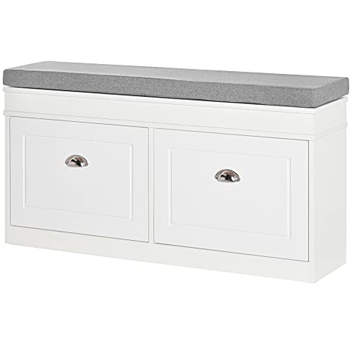 AMPIO SPAZIO PER RIPORRE: Dotata di 2 cassetti, di cui ognuno con 2 scomparti, questo mobile scarpiera con panca può contenere fino a 8 paia di scarpe (taglia massima n.43).