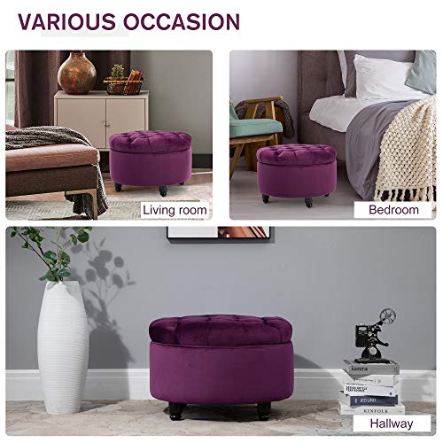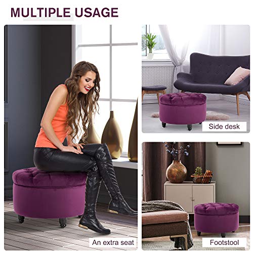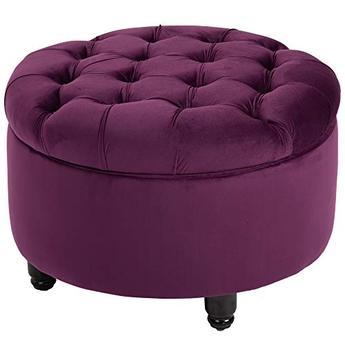 ✅VINTAGE: Design trapuntato a bottoni, rivestimento in velluto viola e piedini neri in stile rétro. Un connubio perfetto, che unisce colori moderni a elementi vintage, dando vita a un pouf elegante. Con cui dare carattere a ogni ambiente.