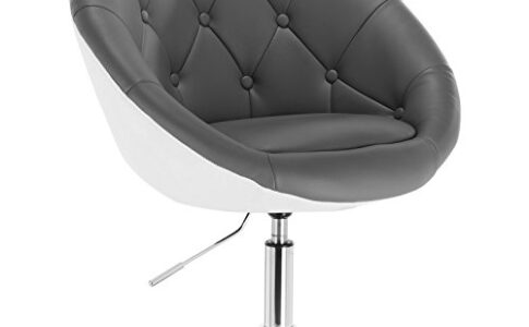 WOLTU bh41grw-1 Poltroncina da Bar Sgabello Girevole Sedia con Schienale Braccioli in Ecopelle Altezza Regolabile Grigio+Bianco
