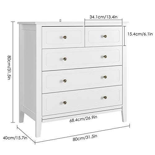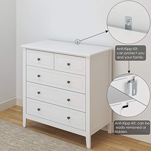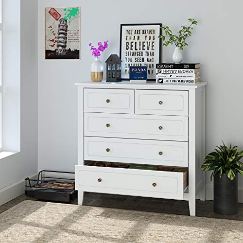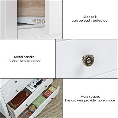 【Ampio spazio di archiviazione】 – Armadio moderno con 2 piccoli cassetti e 3 cassetti.Ogni vassoio della cassettiera può sopportare circa 8 kg. Soddisfa le esigenze di archiviazione e permette di tenere i propri oggetti in ordine.