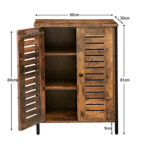 ARMADIETTO VERSATILE: Eleganti pannelli di colore vintage e una robusta struttura in ferro rendono questo mobile un’opera d’arte che può essere abbinato a qualsiasi mobile della tua stanza. Il fondo dell’armadietto è dotato di quattro piedini regolabili, che possono proteggere il pavimento da graffi e possono essere regolati all’altezza in base alle condizioni del terreno
