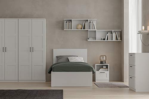 ABBINABILE a tutti i mobili della serie mik: armadio a 2 ante, comodino, cassettiera 3 cassetti, cassettiera 4 cassetti, mobile basso 2 ante, base TV con cassetti, scrivania, mensola, libreria 3 ripiani, libreria 5 ripiani, scarpiera