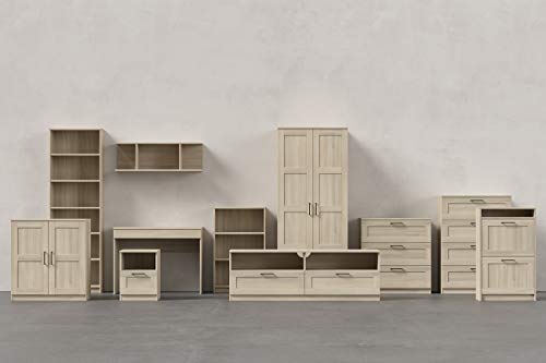 ABBINABILE a tutti i mobili della serie MIK: armadio a 2 ante, comodino, cassettiera 3 cassetti, cassettiera 4 cassetti, mobile basso 2 ante, base TV con cassetti, scrivania, mensola, libreria 3 ripiani, libreria 5 ripiani, scarpiera
