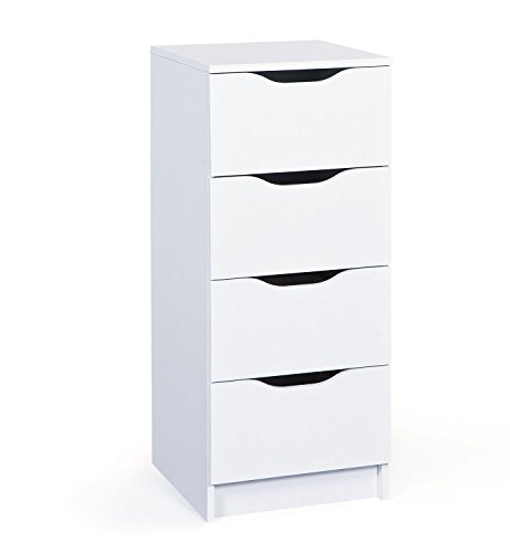 Truciolare, superficie melaminica con comode maniglie intagliate nella parte anteriore dei cassetti, cassetti su guide scorrevoli