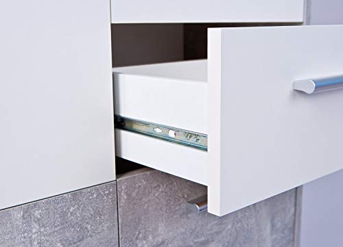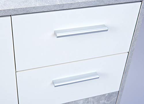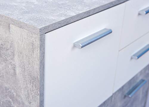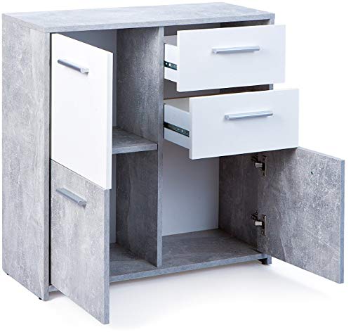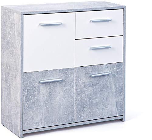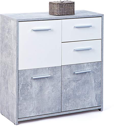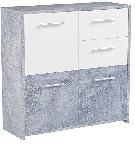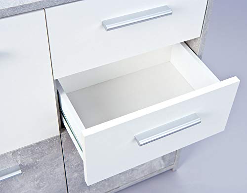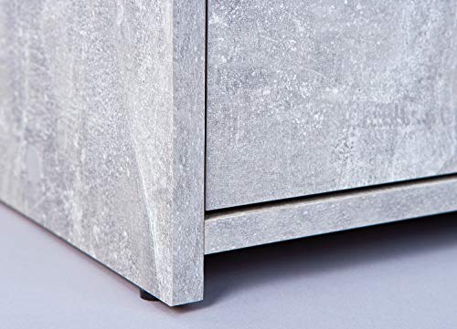 Comò certificato FSC, PP truciolare, superficie melaminica, decoro cemento grigio chiaro e bianco, cassetti su guide scorrevoli
