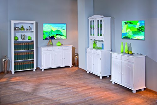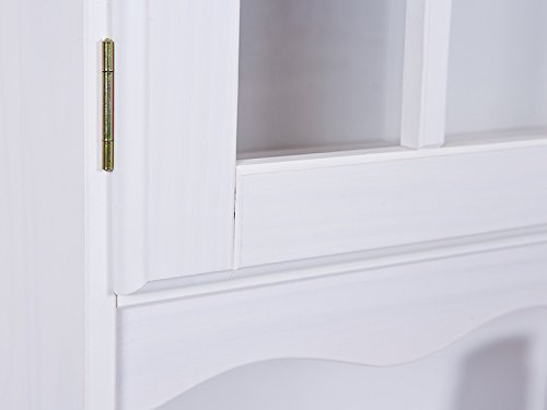 Pino massiccio, 2 cassetti su guide scorrevoli, porte vetrate in vetro di sicurezza trasparente, impermeabile e facile da mantenere