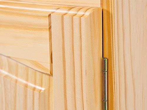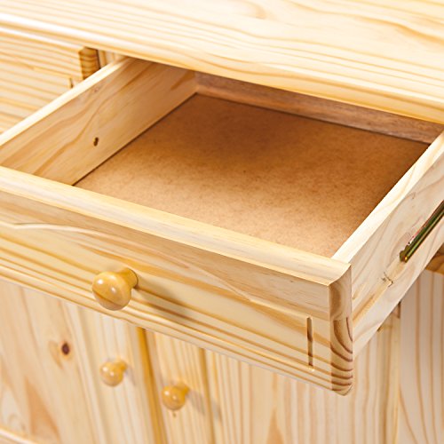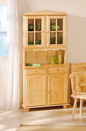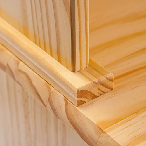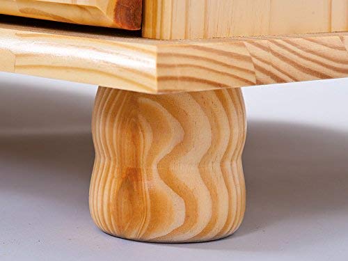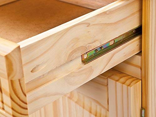 Pino massiccio, 2 cassetti su guide scorrevoli, porte vetrate in vetro di sicurezza trasparente, impermeabile e facile da mantenere