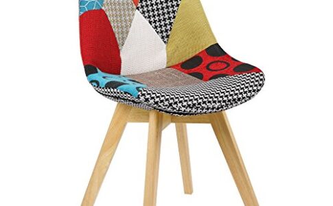 WOLTU® BH29mf-1 Sedie per Sala da Pranzo Sedia Cucina Sgabello con Schienale Seduta Tessuto di lino Gambe in Legno di Faggio Moderno 1 Pezzo Patchwork