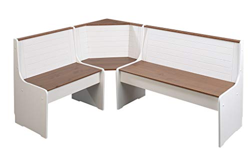 Panca da pranzo in stile rustico con spazio sotto le panche. I colori bianco e seppia marrone si armonizzano meravigliosamente. La panca da cucina può essere montata a scelta a sinistra o a destra