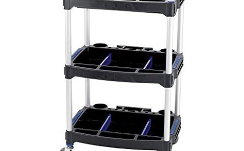 In plastica.Due ruote fisse e due girevoli piroettanti con blocco.Prodotto consegnato in confezione piatta con libretto di istruzioni (Lingua italiana non garantita).Tre ripiani ciascuno con ...