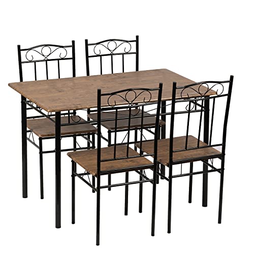 🌓 Set Tavolo e Sedie — Ă perfetto per 4 persone che può essere utilizzato in sala da pranzo, soggiorno o cucina. Il design retro può essere abbinato alla maggior parte degli stili decorativi.